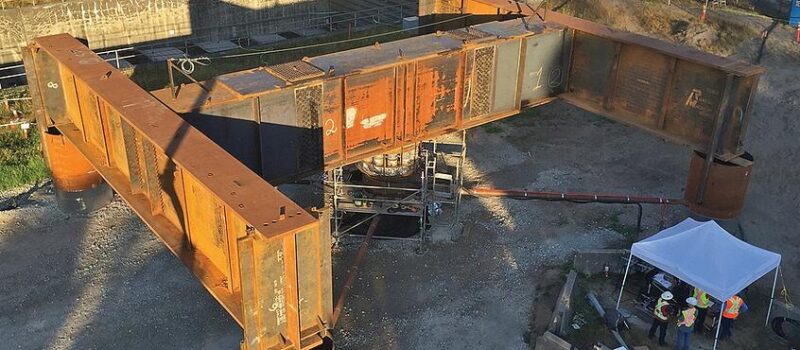 Due to the complex nature of the project, and the large capacity of the proposed bridge piles, traditional instrumentation was not suitable for the test. The driving of 5-2m pipe piles adjacent to the tunnel required crack and vibration monitoring of the existing tunnel structure. The project site is adjacent to the Fraser River where the ground consists of unconsolidated, fine-grained, river sediments which are prone to settlement and liquefaction under seismic conditions.